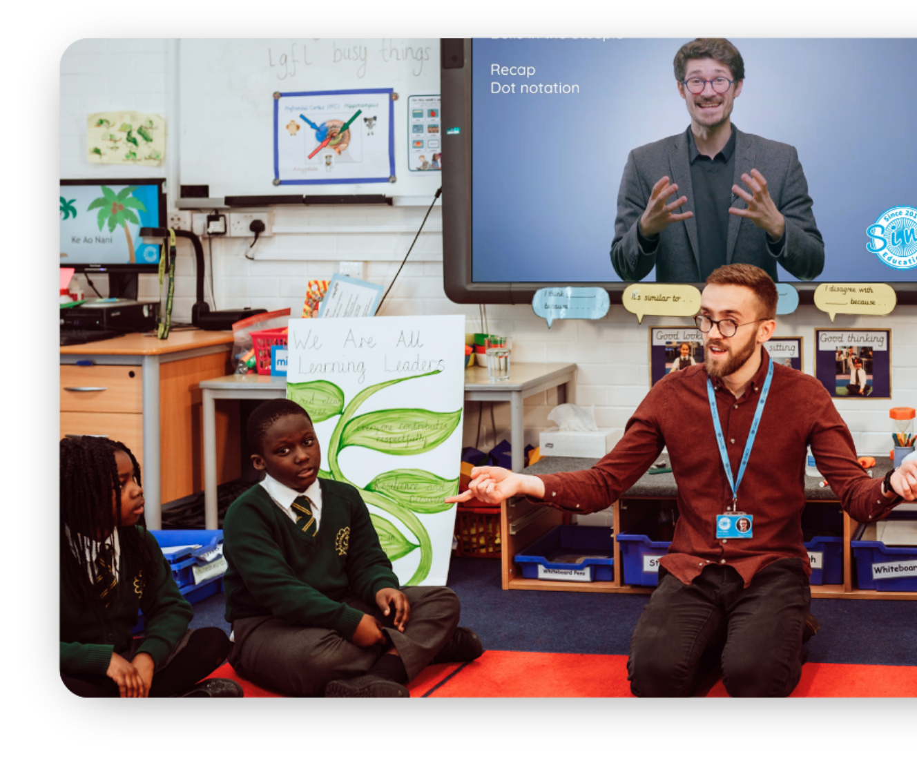 Teachers lead with on-screen support and guidance.