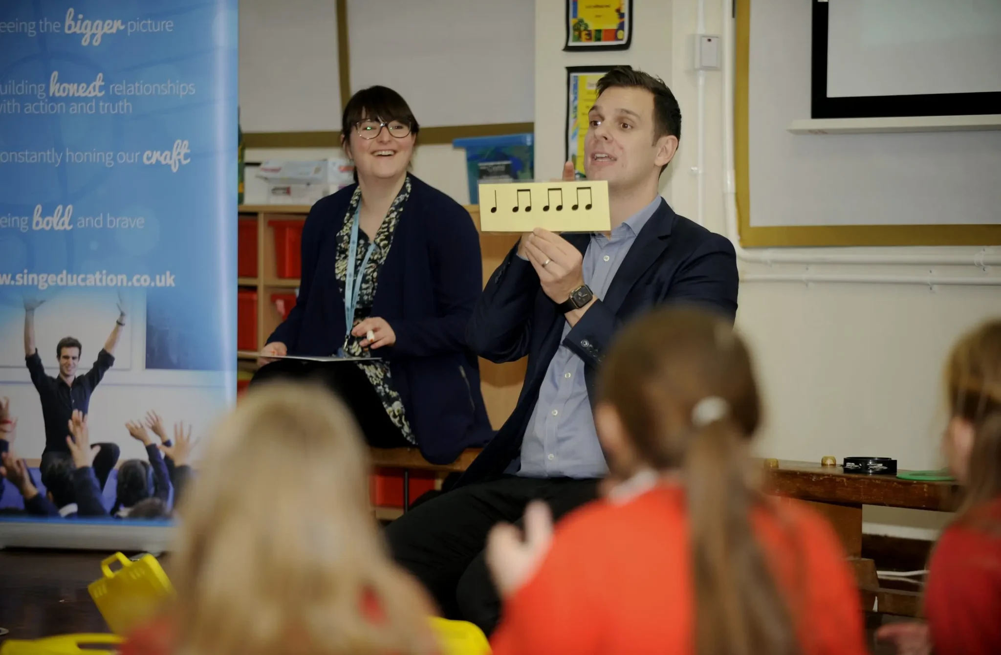 This is how Sing Education delivers classroom music. While meeting all the requirements of the National Curriculum, our Schemes of Work and termly lessons focus on getting children to actually experience and enjoy music. We don’t encourage them to reproduce sounds or melodies by rote. Each engaging and inclusive lesson uses our prepare, present and practice technique to focus their attention and build their understanding and musicianship.